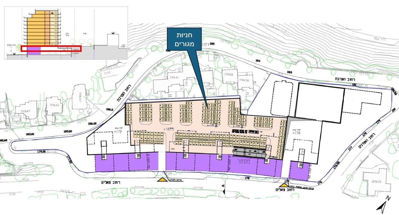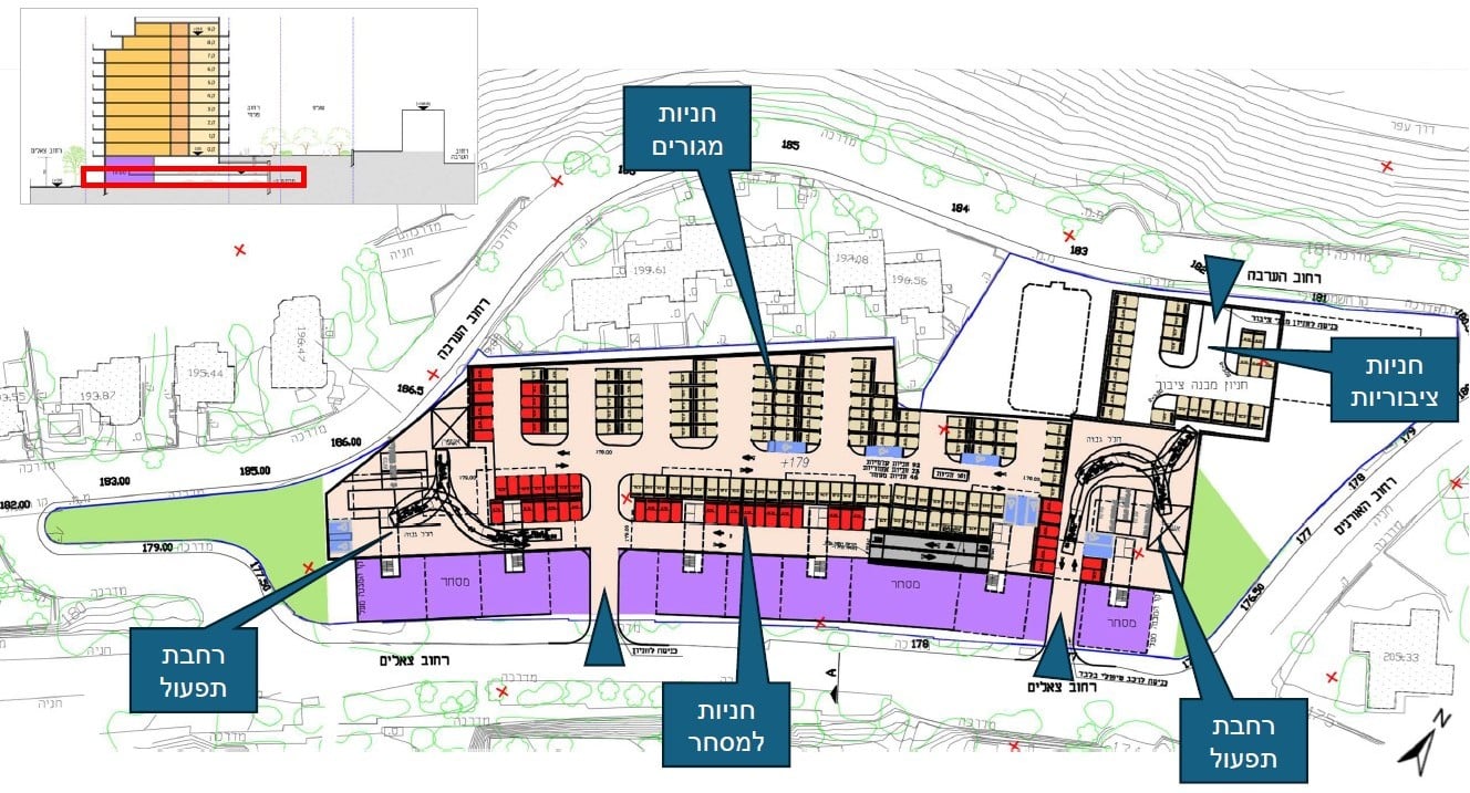 קומת מסחר ומרתף חניה (רחוב תחתון)