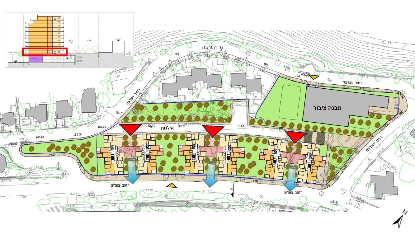הבניינים הכלולים במתחם: האילנות 1-5 ביקנעם עילית.